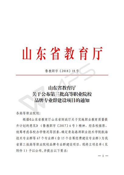 根据《山东省教育厅关于实施高等职业院校第三批品牌专业(群)建设项目的通知》,我院航海类专业群获批为山东省第三批高职院校品牌专业群建设项目。