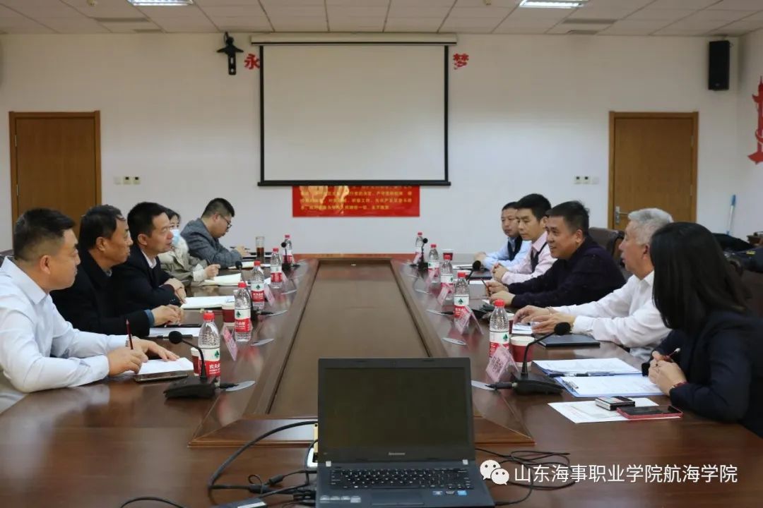 为促进校企深度合作,加快推进华洋海事产业学院建设,2月15日下午,华洋海事中心有限公司劳务事业部总经理刘维、副总经理申石磊、校企合作中心经理夏少雷及青岛华洋海事服务有限公司副总经理隋延航等一行五人来我校参观交流,副校长宋志刚、吕明及航海学院相关人员陪同座谈。双方围绕产业学院后续建设、项目合作、学生培养以及师资培训等方面展开了深度研讨。