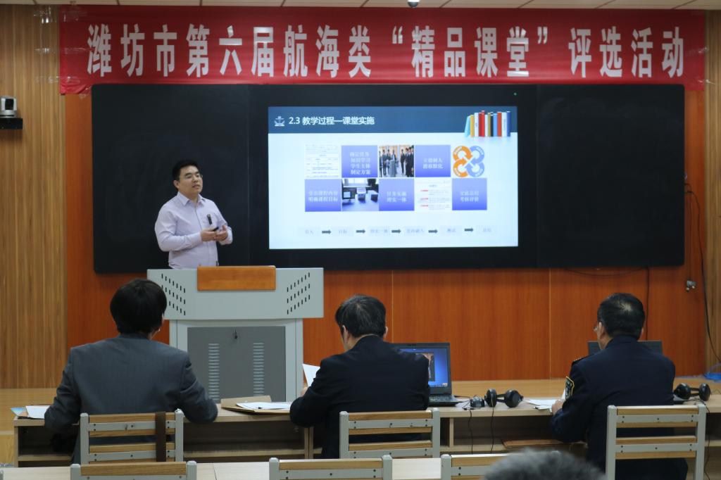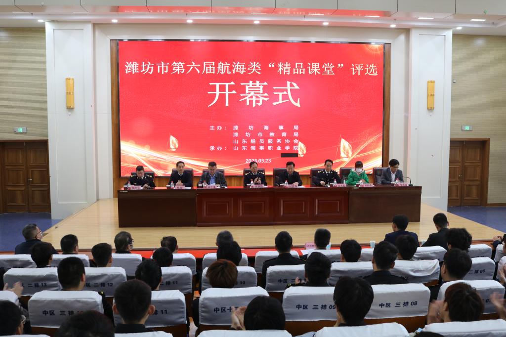 3月23日,由潍坊海事局、潍坊市教育局、山东船员服务协会船员管理分会主办,山东海事职业学院承办的“潍坊市第六届航海类‘精品课堂’评选活动”在我校举行。本次比赛共有来自潍坊辖区4家航海类院校的10支参赛队伍30余名选手参加。潍坊海事局、潍坊市教育局、山东船员服务协会船员管理分会相关领导出席本次比赛活动。