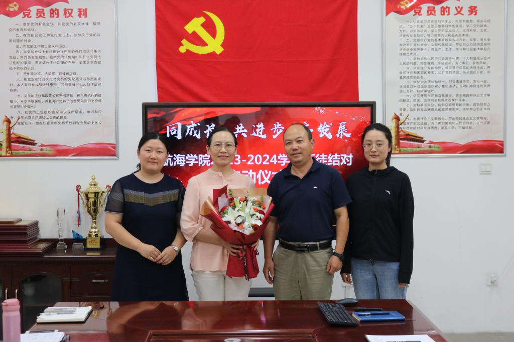 仪式开始,首先由李晓伟副院长细致解读航海学院师徒结对活动实施方案,明确了师徒结对的意义、双方的职责、评价考核原则等。她期望师傅能不断增强为师之能,提升传道授业素养,恪尽为师之责,担当教书育人使命;期望徒弟能在师傅指导下不断学习、不耻下问,争取尽快提高教学业务水平,早日成长为一名优秀的青年教师。随后,徒弟向师傅献花,并合影留念。
