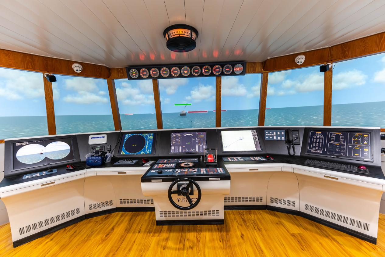 目前,航海虚拟仿真实训基地建有航海模拟器实训室、轮机模拟器实训室、通讯导航仿真实训室、船舶模型室等共10多个模拟实训室,建筑面积达1200平方米,资产总值共计1000余万元。该基地配有船舶操舵系统、航海英语听力与会话训练系统、货物配积载系统、电子海图显示与信息系统、船舶主机动力系统等各类实训教学虚拟仿真软件,可同时满足航海技术、轮机工程技术、船舶电子电气技术等多个航海类专业的实训教学需求。