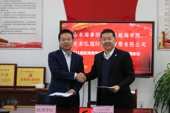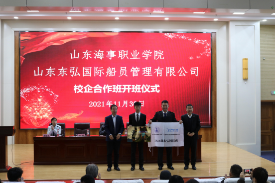 为深化产教融合校企合作,推动现代职业教育高质量发展,11月30日下午,航海学院与山东东弘国际船员管理有限公司在图书馆报告厅举行校企合作东弘订单班开班仪式。东弘国际海事集团董事长姜明旸、培训总监张伟等企业领导,学校副校长张庆会、副校长/航海学院院长吕明、航海学院教师及“东弘校企订单班”全体学生参加了开班仪式。
