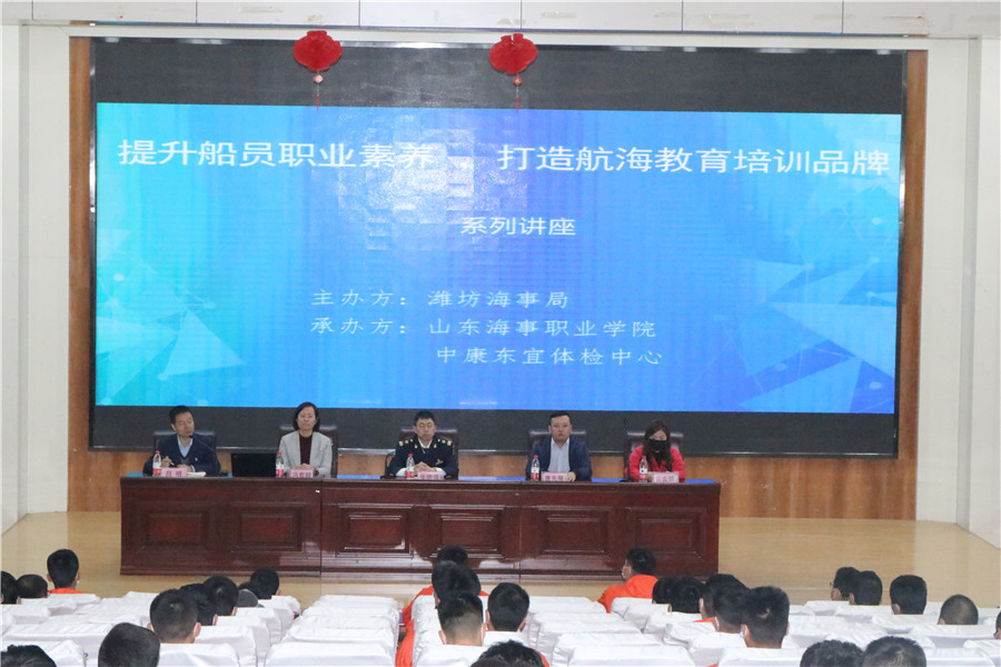 在我们国家由海洋大国向海洋强国迈进的过程中,为提高海员产业价值感、增强海员光荣感和从业幸福感,由潍坊海事局主办、航海学院承办的船员心理讲座在图书馆报告厅举行。本次讲座邀请中康东宜体检中心的专家为社会培训学员进行心理健康辅导。学校副校长、航海学院院长吕明主持本次活动。