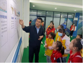 参观过程中,航海学院副院长许亮船长带领小客人们有序参观了体验中心的各项展览室。大家在认真聆听许亮船长和李宝存轮机长讲述自身航海故事的过程中,进一步了解了航海文化、学习了现代航海知识。