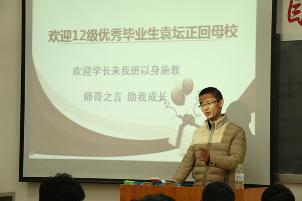 图一:12级优秀毕业生袁坛正到14级3班交流