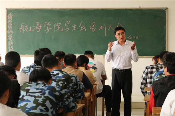 4 月 26日下午,航海学院在2217教室召开“学院第四届学生会全体干部培训大会”。本次培训大会的主题是“航海学院学生干部培训与思想统一”,大会由航海学院院长助理刘继峰主讲,团总支书记王涛涛主持。航海学院第四届学生会全体成员参加了此次会议。