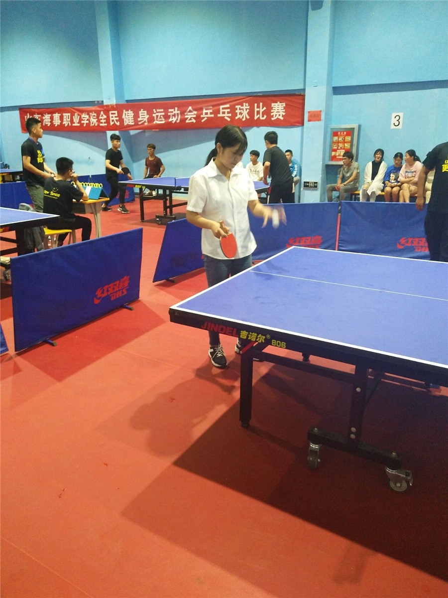 为开展阳光体育运动,全面建设阳光校园,营造一个积极、健康、拼搏进取的校园运动与学习氛围。山东海事职业学院举办的“全民健身运动会”乒乓球比赛于2018年6月13日下午在体育馆举行。