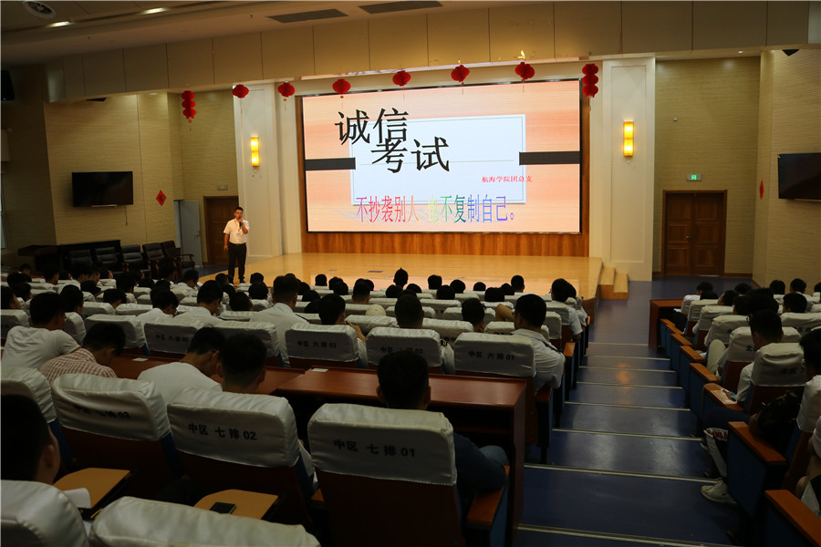 为迎接即将到来的期末考试,树立良好的考风考纪。6月30日晚自习期间,航海学院在图书馆报告厅召开“诚信应考——‘不抄袭别人,不复制自己’”的主题班会,航海学院2017/2018级全体同学参加了此次班会。此次主题班会由航海学院辅导员张建军老师主持。