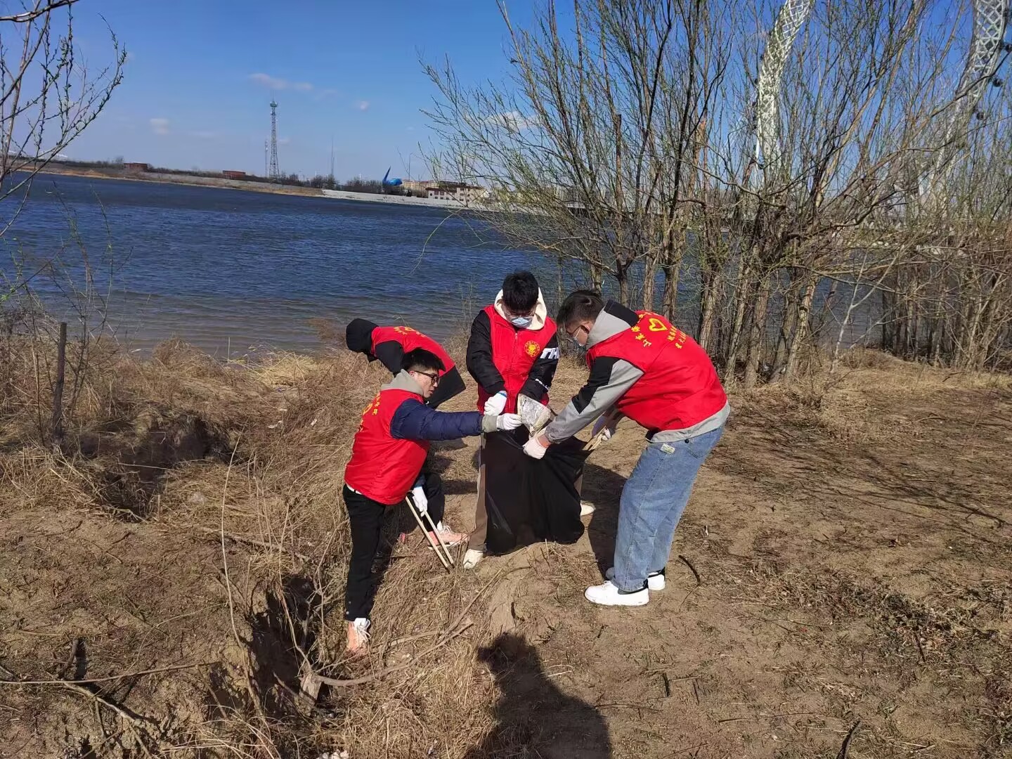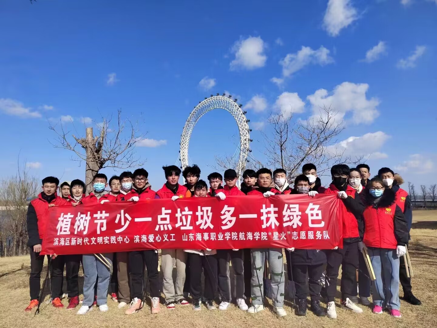 春回大地万物复苏,在第45个植树节当天,由滨海区新时代文明实践中心指导,山东海事职业学院航海学院“星火”志愿服务队携手滨海爱心义工公益服务中心开展“少一点垃圾 多一抹绿色”河流净滩活动,以实际行动为滨海减少一点垃圾,多一点绿色,守护母亲河。