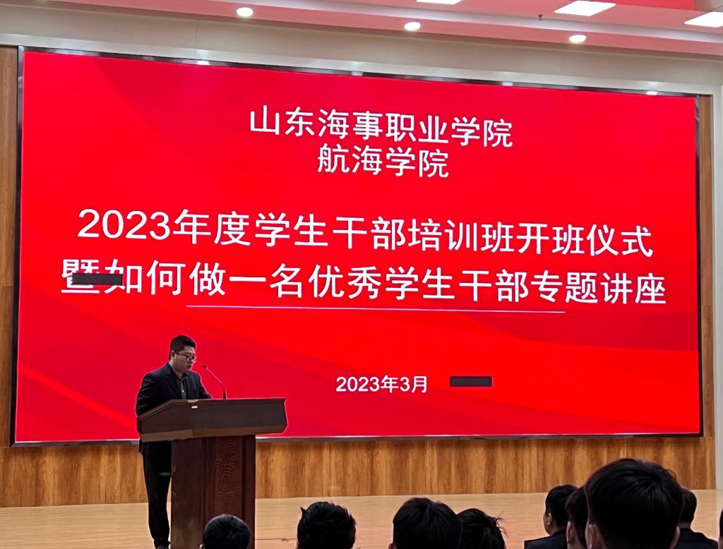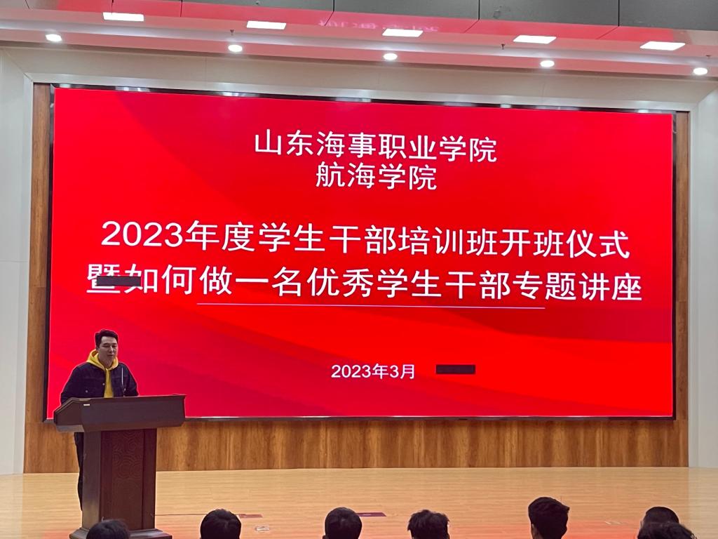 为了进一步加强航海学院学生干部队伍建设,充分发挥学生干部在“自我管理、自我教育、自我服务”中的先锋模范作用,明确学生干部开展工作的方向和目的,全面提高学生干部的管理水平及综合素质,3月23日,航海学院在图书馆举办“立大志、提能力,担大任、转作风”为主题的学生干部培训开班仪式暨如何做一名优秀学生干部的专题讲座。开班仪式由航海学院团总支书记鞠凯老师主持,航海学院党总支副书记张建军老师为开班仪式致辞,航海学院全体辅导员和各级学生干部180余人参加开班仪式。