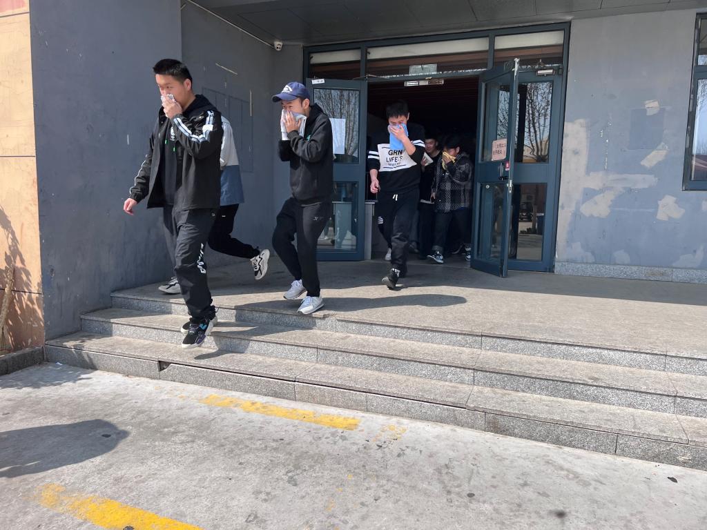 一阵急促地警报声拉开了“学生安全疏散演练”活动的帷幕。听到警报声,各位辅导员立即到达指定位置,指导学生快速疏散,学生们弯着腰、用湿毛巾捂住口鼻,沿着逃生路线快速前进,有序撤离到学校操场的安全区域,各班班长清点人数,并层层向上汇报。演练结束后,学院团总支书记鞠凯老师点评了大家的疏散情况,整个应急演练活动规范、有序、紧凑、安全、高效,大家临危不乱,组织有序,逃生时没有发生拥挤、踩踏和碰伤的事故。