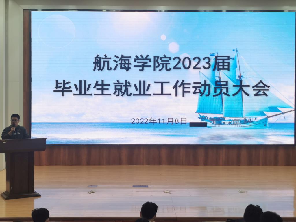 为贯彻落实党中央、国务院“稳就业”“保就业”决策部署,落实交通运输部关于引导毕业生积极投身加快交通强国建设的指示精神,确保2023届毕业生就业工作有序开展,帮助毕业生熟悉就业政策、了解就业形势、把握就业机会,11月8日下午,航海学院在图书馆报告厅召开2023届航海类毕业生就业动员大会。航海学院党总支副书记张建军、毕业班辅导员及2023届毕业生参加此次就业动员会。