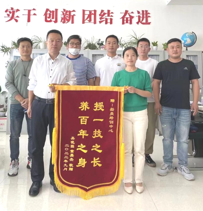 9月26日,学校第2022008期值班水手班学员代表将写有“授一技之长 养百年之身”和“言传身教指导有方 关爱有加胜似亲人”的两面锦旗送到了航海学院办公室和专业教师石凡东老师手中,对学院工作人员及老师在培训学习和考试之间的细致关怀表达了深深的感激之情。