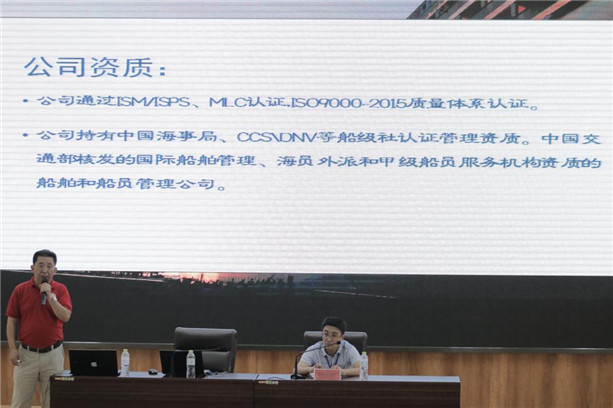 图二:北京鑫裕盛船舶管理公司船员部经理向毕业生做企业介绍