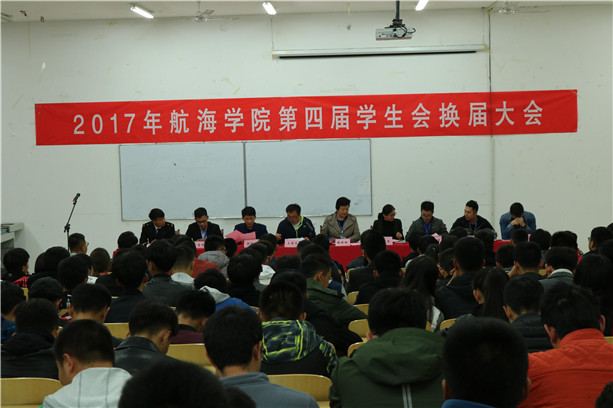 11月1日晚,航海学院第四届学生会换届大会在2518教室圆满举办。此次会议由航海学院团总支书记王涛涛主持,航海学院党总支书记臧琪琳、院团委副书记李雪、航海学院各辅导员、第三届学生会骨干、第四届学生会全体成员,以及2016、2017级各班班委代表参加了本次大会。