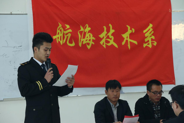 2015届航海系学生会主席曹朔恺发表了就职报告,承诺将不辜负历届学会为系部建设所做出的积极努力,将进一步完善学生会的规章制度,带领航海技术系学生会实现更突出的工作职能。同时并对学生会本学期做出工作计划部署。希望与学生会一同为建设好航海技术系奉献青春、贡献力量。