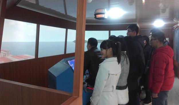 我院的青少年科普基地航海体验馆于2014年12月12日挂牌后,迎来了首批体验者。港航系的同学都是非航海类专业,对航海知识和航海实训设备了解甚少。航海科普基地建立并挂牌之际,恰逢港航系党支部入党积极分子培训之时,当他们了解到航海系科普基地体验馆建立的消息后,立即组织其入党积极分子培训班的同学们40多人,到航海体验馆进行参观体验。他们每到一处都感受到了航海知识的丰富性,体验到了航海行驶的各种环境,表现了极大的好奇心,使学生们有了对航海知识有了感性认识。