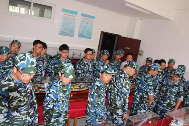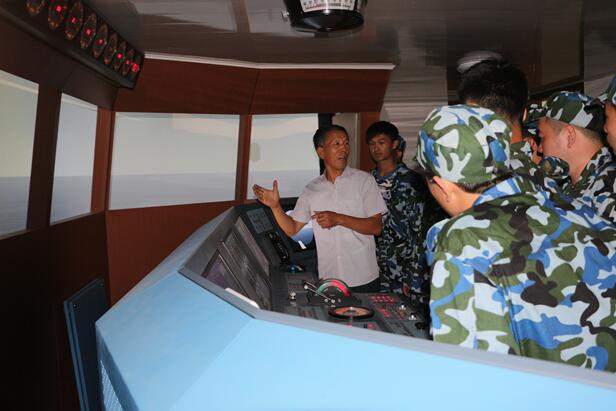 9月9日,新生军训第三天,航海技术系精细组织学生参观实训设备。航海技术系的老师们在各个班级给同学对航海专业进行介绍后,又组织学生到航海实训室参观实训设备。下图为航海系部分老师和同学讲解、参观现场。孙俊杰摄