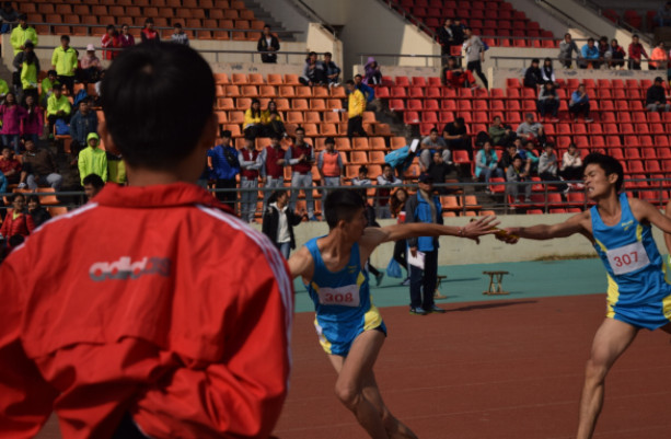 图五:航海系李宗林同学在4*100米接力比赛中