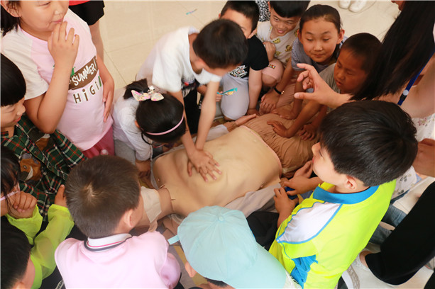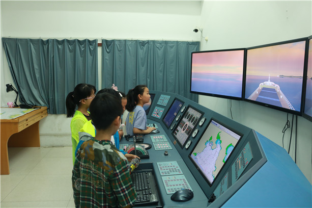 本次活动旨在向小学生进行航海知识的传播,让航海走进生活,让小学生了解中国的航海文化。按照预先制订的参观方案的安排和部署,师生们依次参观了航海模拟器(BRM)、船模陈列室、精通急救实训室、轮机模拟器(ERM)及航空实训楼。在航海模拟器实训室,航海学院老师带领师生们真实体验了大风浪天气中船舶的操控,来使参观者对航海生活有了更直观的感受。在精通急救实训室,师生们在学院老师的引导下进行了系统的心肺复苏术的学习,并现场进行了模拟训练,借此来传播急救知识。活动的最后,学生们进入了模拟机舱,了解了机舱基本构造,知道了船舶动力的来源及机械运转的原理。