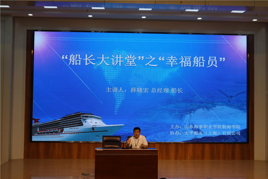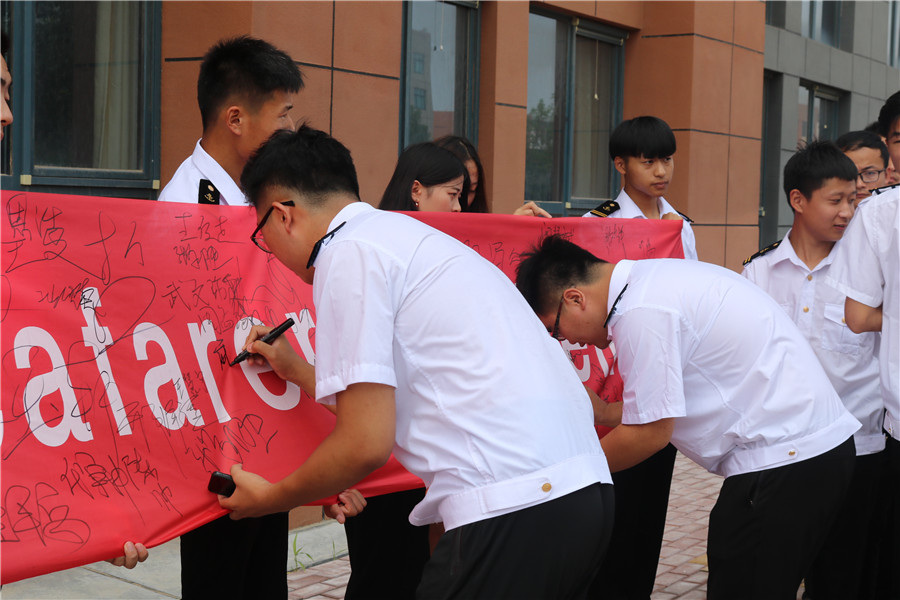 6月25日,值第八个“世界海员日”之际,航海学院举办了系列庆祝活动。本次活动邀请到潍坊海事局张德强主任、上海太平船务有限公司薛晓宏总经理等诸位领导和专家。山东海事职业学院副院长李振鹏、航海学院院长吕明、副院长许亮及全院航海类专业学生参加了活动。