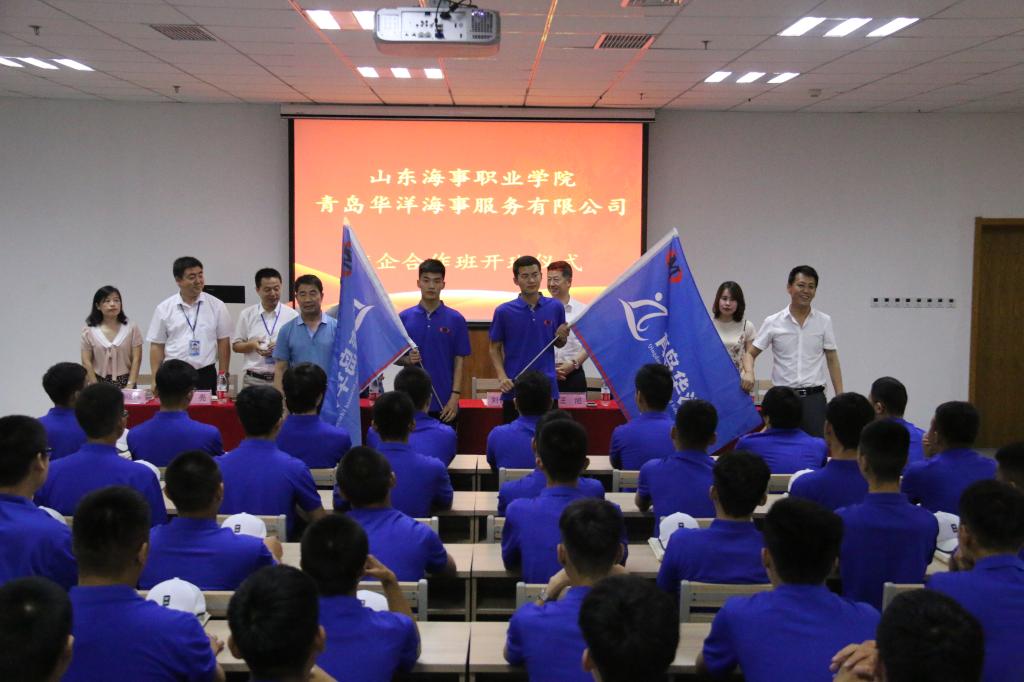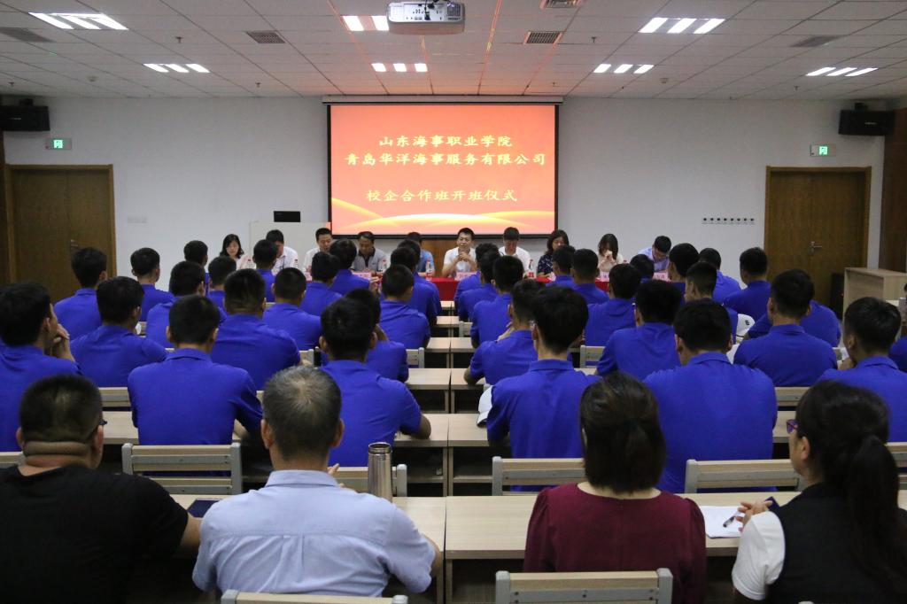 预祝山东海事职业学院航海学院与青岛华洋海事服务有限公司共同举办的“华洋班”圆满成功!预祝“华洋班”的同学们学有所成,成为对学院、企业和社会有用的人才!(航海学院团总支供稿)