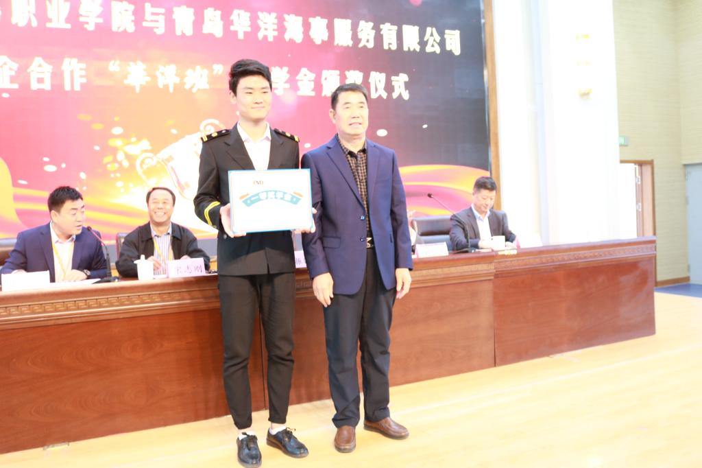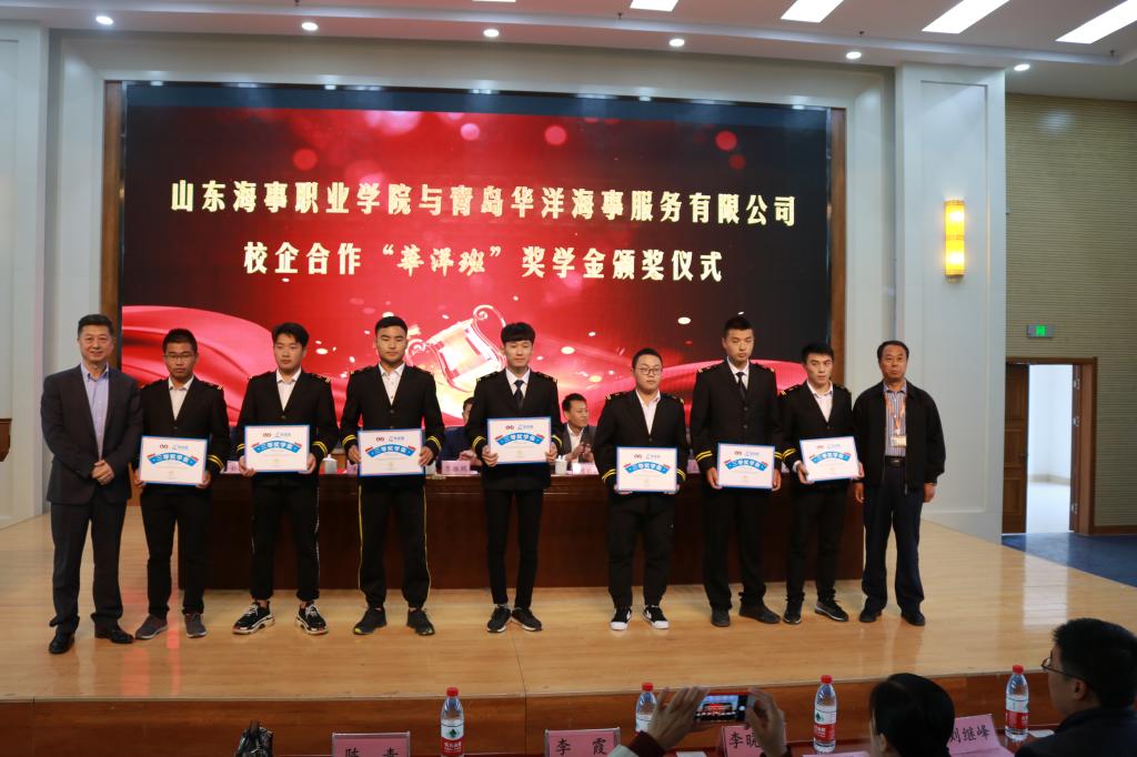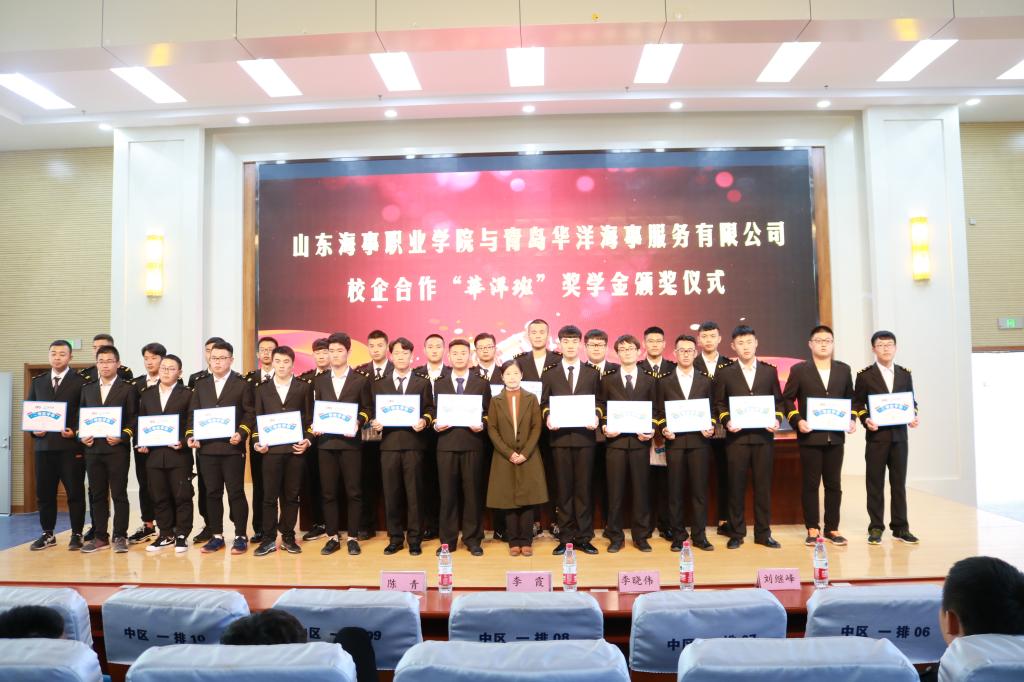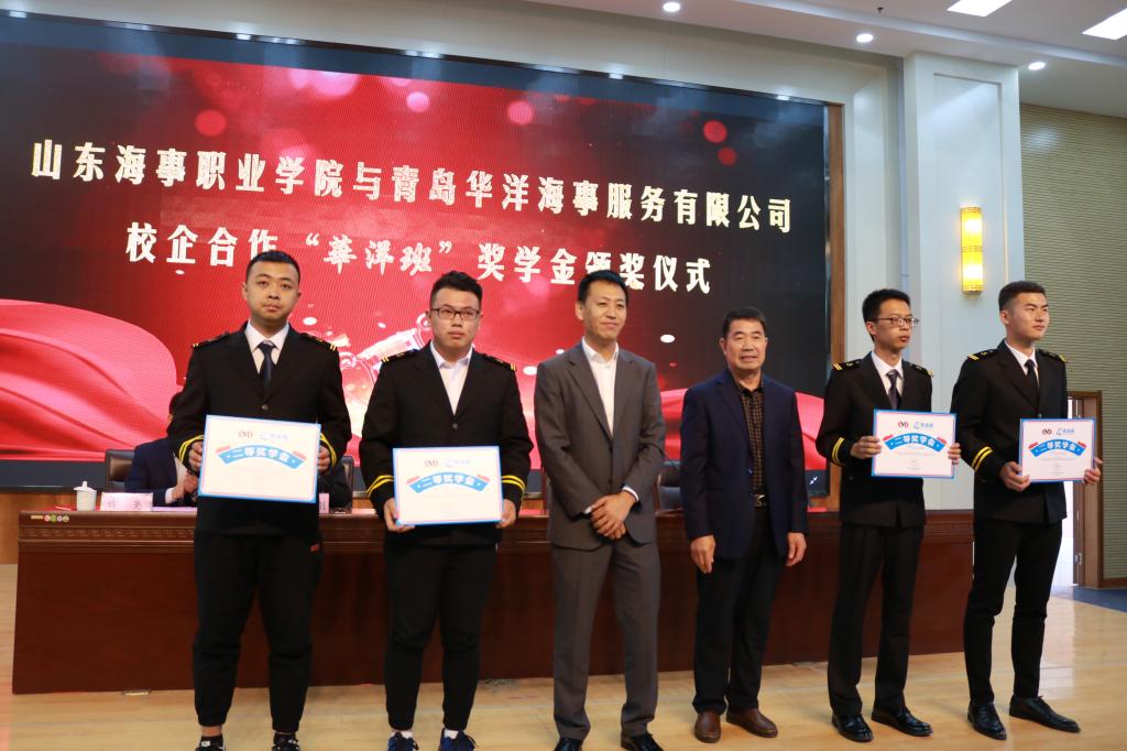 10月12日上午,山东海事职业学院与青岛华洋海事服务有限公司校企双主体育人模式合作“华洋班”奖学金颁发仪式在图书馆报告厅举行。青岛华洋海事服务有限公司常务副总经理刘长江、副总经理王旭,山东海事职业学院副院长李振鹏、院长助理宋志刚、航海学院院长吕明及2017级、2018级航海学院全体学生参加。奖学金颁发仪式由航海学院副院长许亮主持。