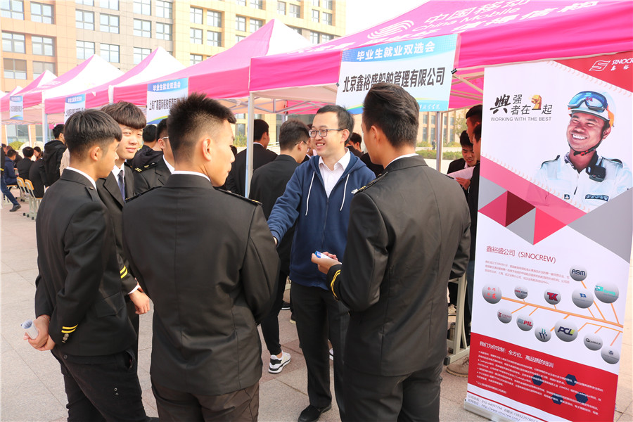 10月25日,山东海事职业学院2019届航海类毕业生就业双选会在图书馆南广场举行。此次双选会共邀请到包括青岛华洋海事服务有限公司、北京鑫裕盛船舶管理有限公司、厦门兴诺信船务有限公司等在内的各类大中型企业40余家,提供就业岗位800多个。