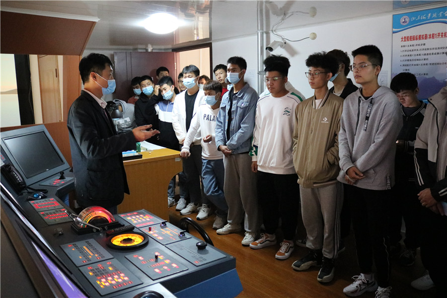 在专业教师的带领下,同学们依次参观了潍坊市新时代海上文明基地主展馆、国际海洋中心、模拟船、ERM实训室、BRM实训室等场馆。每到一处场馆,首先由实训负责老师讲解参观注意事项,然后就实训室的整体情况、设备的基本工作原理及所学课程的相关性进行了详细的讲解。