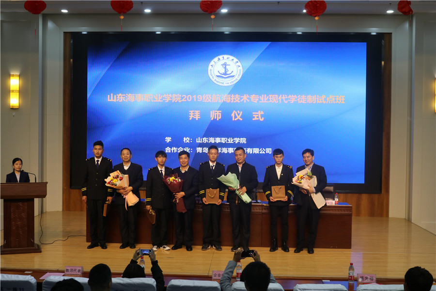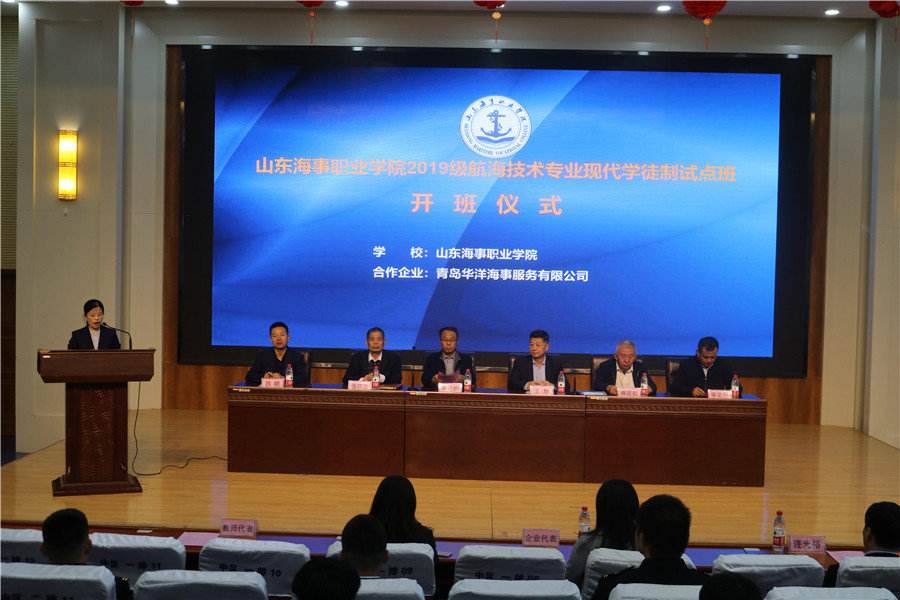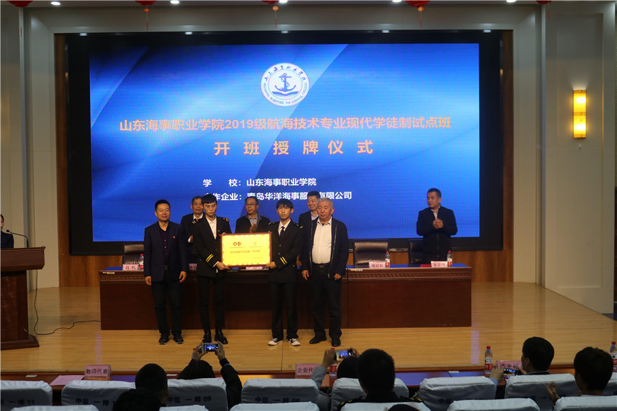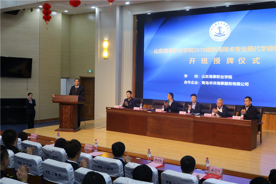 在与会成员的见证下山东海事职业学院2019级航海技术专业现代学徒制试点“华洋班”圆满开班。此次开班仪式给师生极大的信心和鼓舞,使师生对现代职业教育及自身发展前景充满了信心。相信在校企双方共同努力下,定能合力保障该项目的扎实推进,将我校现代学徒制试点办出质量,做出成效,努力将该项目打造成具有示范作用的山东品牌和现代学徒制实施的典范。