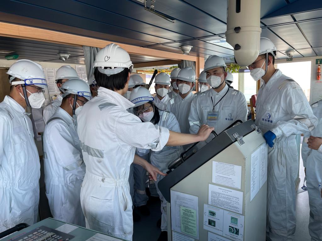 在船上,同学们直观地看到船舶结构和各类设备,并由工作人员带领参观了驾驶台、机舱、生活区等场所,对岗位职责、船上工作和生活环境有了深刻的了解。