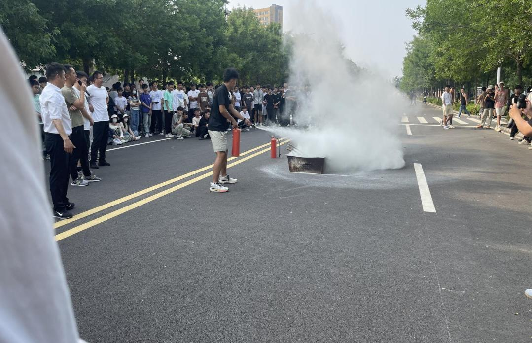 演练过程中,航海学院特此安排专业教师丁浩为大家进行了消防安全知识培训,重点介绍了火灾的危害性、宿舍发生火灾的常见原因以及预防措施,详细地讲解了火场逃生的基本原则和技巧,并现场演示了各类灭火器及其他消防器材的使用方法。在随后的实操练习过程中,大家积极参加,按照灭火步骤和方法迅速将大火扑灭。