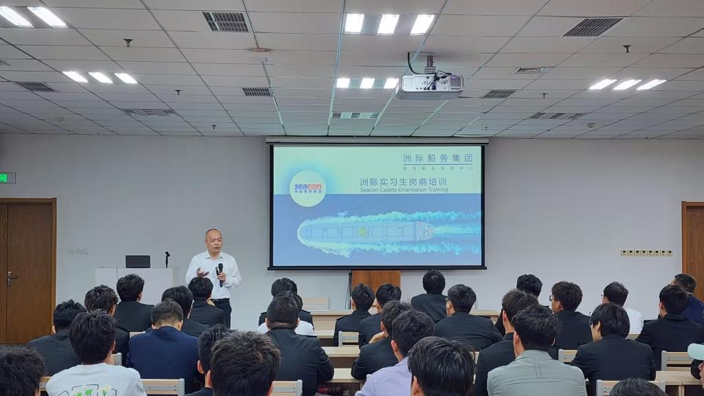 校企协同,精准目标定位 。“2024级洲际班”是洲际船务集团与山东海事职业学院共同遴选出的联合培养班级,共有80名航海技术、轮机工程技术专业的优秀学生组成,旨在为企业量身定制培养一批高素质、专业化的航海人才。为适应航运新业态需求,双方协同制定了人才培养方案,优化了课程设计,学生将在三年学习期间接受学校和企业优质师资联合对其实施的系统的理论教育与实践训练,同时企业还利用学生业余时间为同学们安排各种船员专题讲座、主题活动、访船实践等多样化培养内容。沈爱兵船长强调:“校企共同培养能够让学生提前了解并适应企业用人需求,毕业后能够实现从校园到职场的无缝衔接。”
